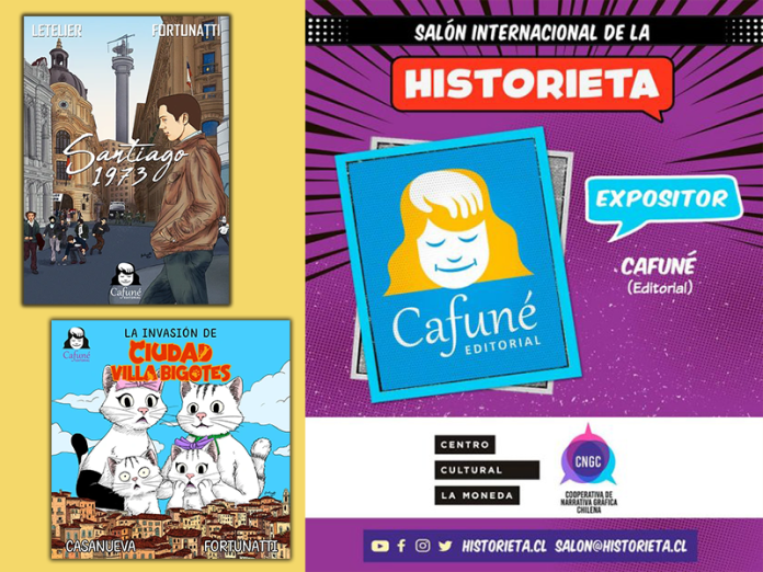 Editorial Cafuné estará presente con su catálogo además de presentar los libros gráficos Santiago 1973 de Fernando Letelier Baltierra, ilustrado por Gianfranco Fortunatti , una historia ambientada en los meses previos al golpe de Estado y que narra el agitado clima político del momento a través de la mirada de un estudiante provinciano que llega a estudiar a la capital.